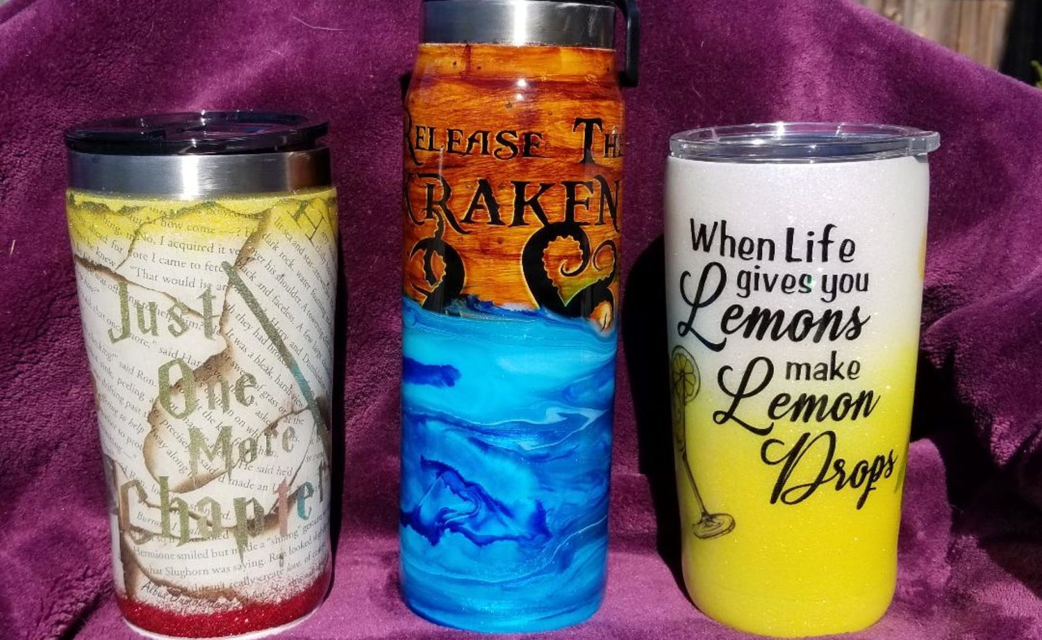 Home crafted goods such as pens, coasters, and tumblers.